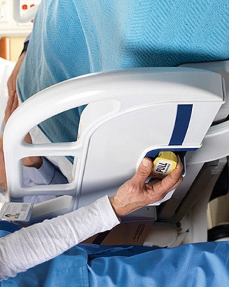 Diseñado con una posición de apoyo intermedia que permite a los pacientes ayudarse a sí mismos a entrar o salir de la cama, lo que ayuda a reducir el riesgo de caídas y el riesgo de lesiones para el cuidador. -